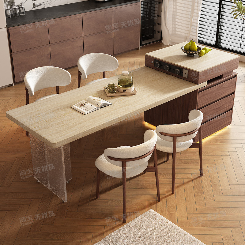 中古风实木岩板岛台餐桌一体家用可伸缩亚克力悬浮倒台高级中导台