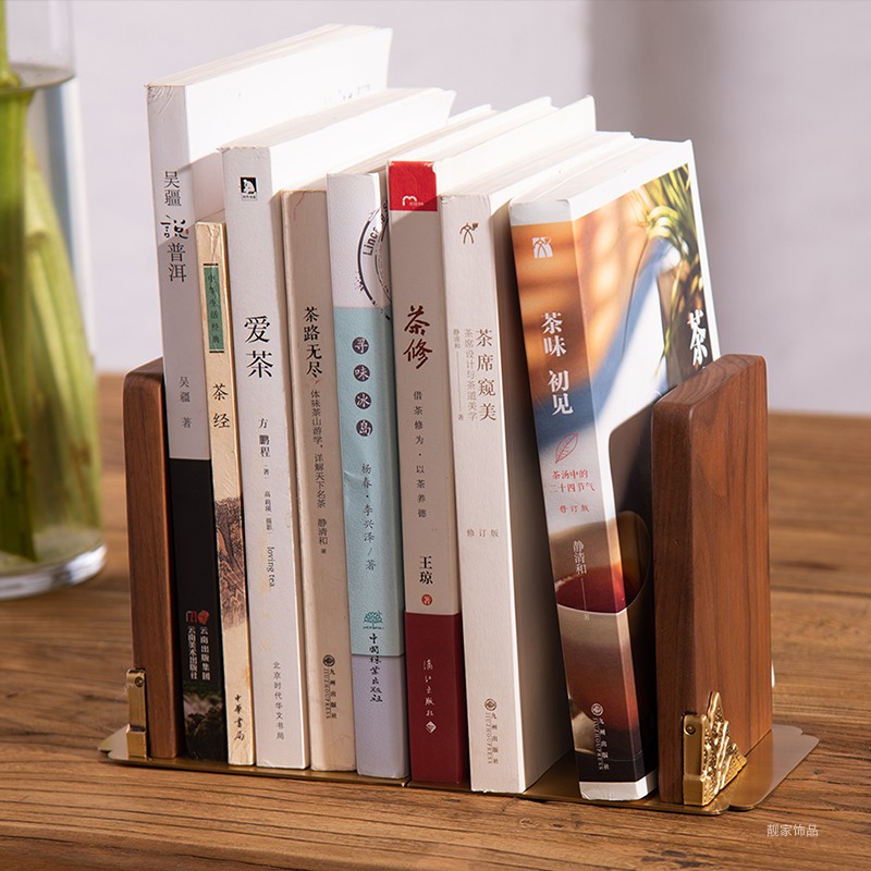全铜黑胡桃木原创山脉中式艺术书立学生书桌收纳架样板间装饰隔板