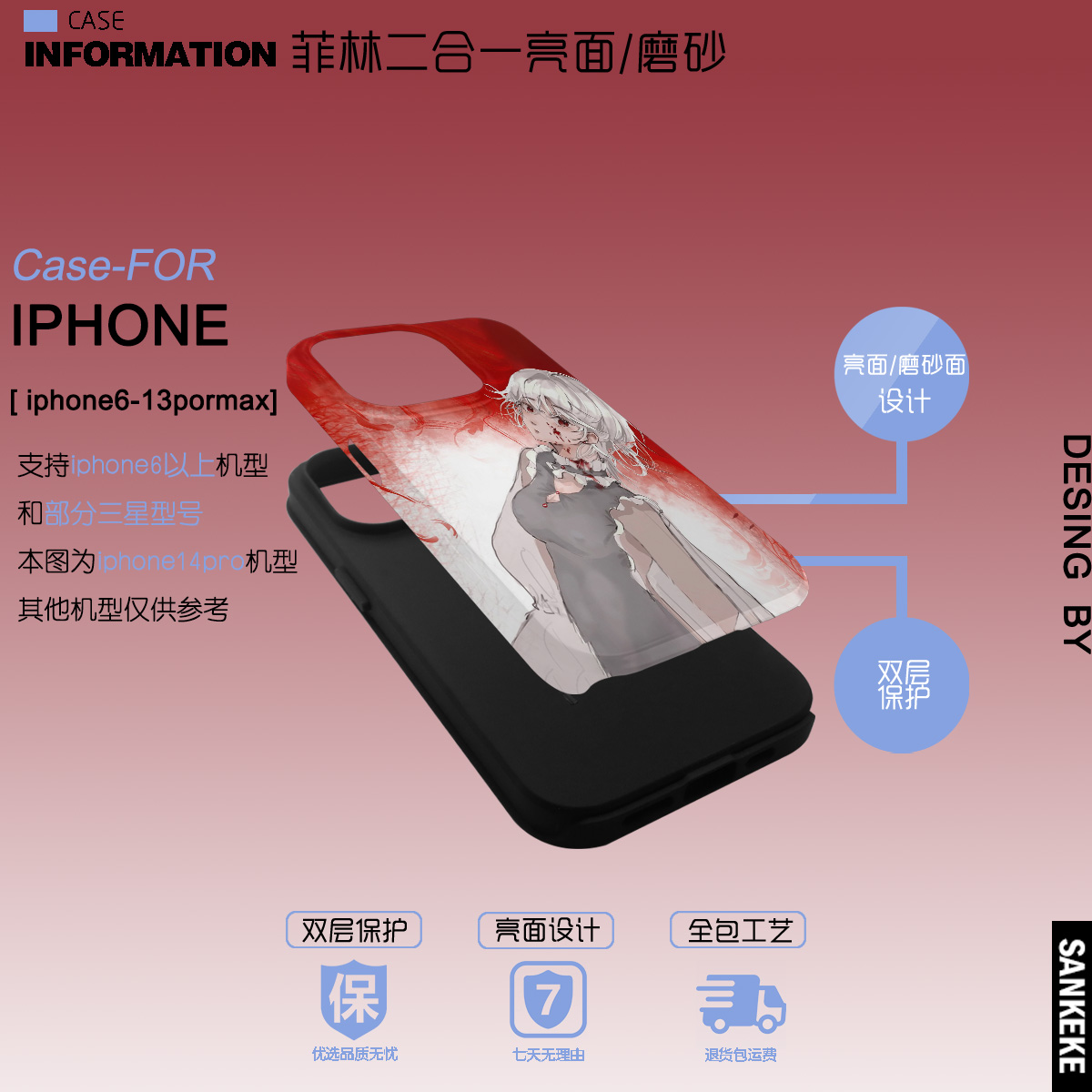 三壳壳原创小众血色下的少女适用于苹果15promax/plus/14/13/12/11韩国涂层菲林二合一高级IMD磨砂手机保护壳