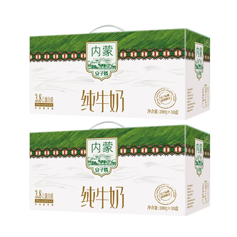 新日期安子婿3.8g蛋白高钙纯牛奶礼盒装200g*10盒*2箱学生早餐奶