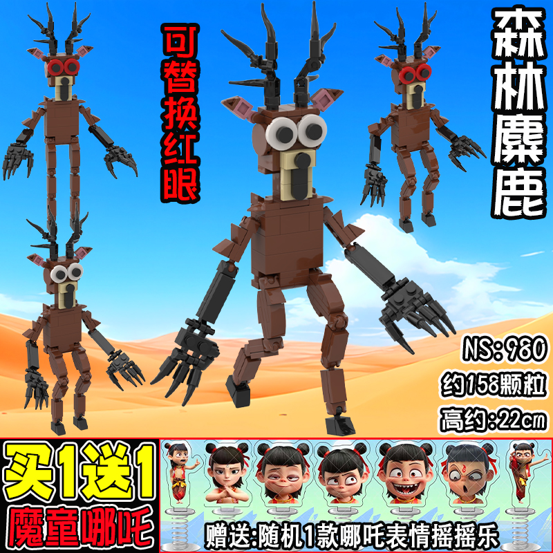 网红新款森林中99夜积木动物生存游戏麋鹿暗夜猫头鹰拼装模型玩具