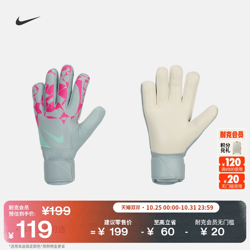 耐克透气足球守门员手套(1副)冬季实用魔术贴拼接网眼NIKE HQ0257