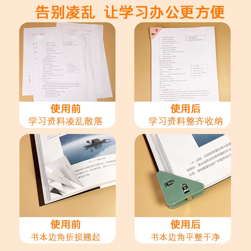 三角文件夹边角夹书角防卷神器透明试卷收纳资料夹子卷子夹学生书夹办公用品长尾夹手账夹文具书本纸张分类