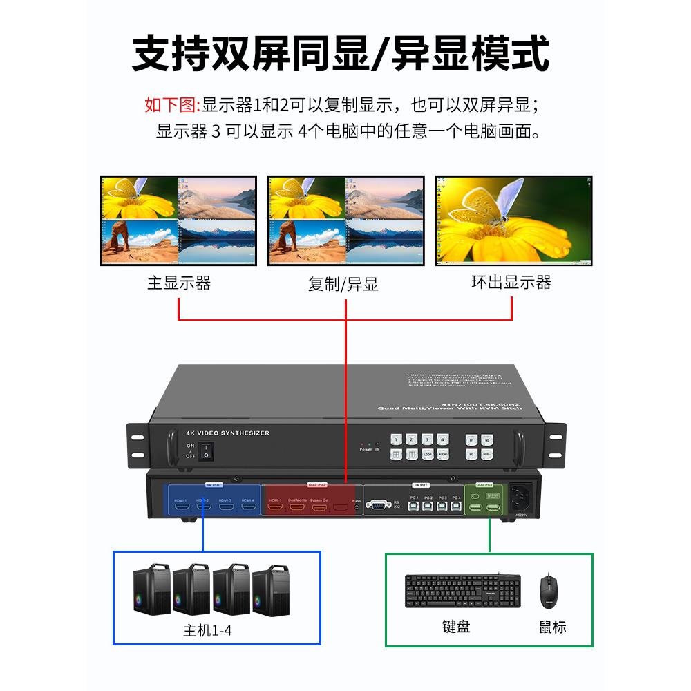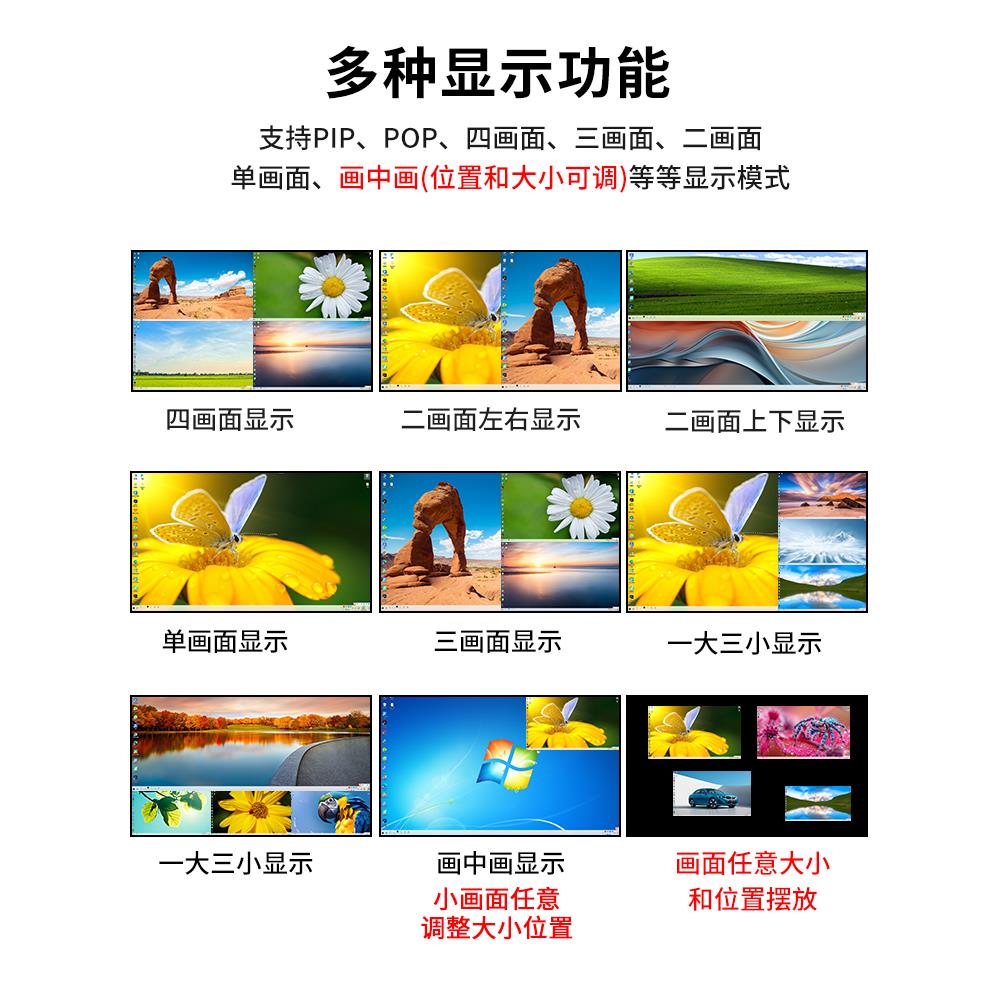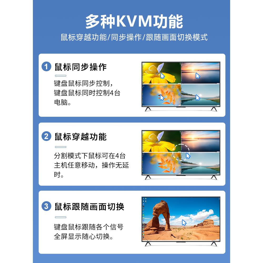 4K/60Hz屏幕分配器Kvm屏幕大小可以随时调整4进1出无缝切换计算机屏幕分配器