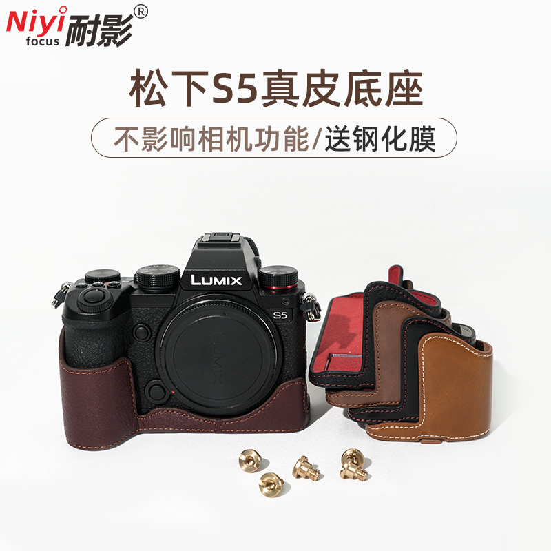 耐影S5M2二代真皮底座适用于松下微单S5 S5二代 GH6复古相机仿皮半套保护皮套专用底座贴身护套