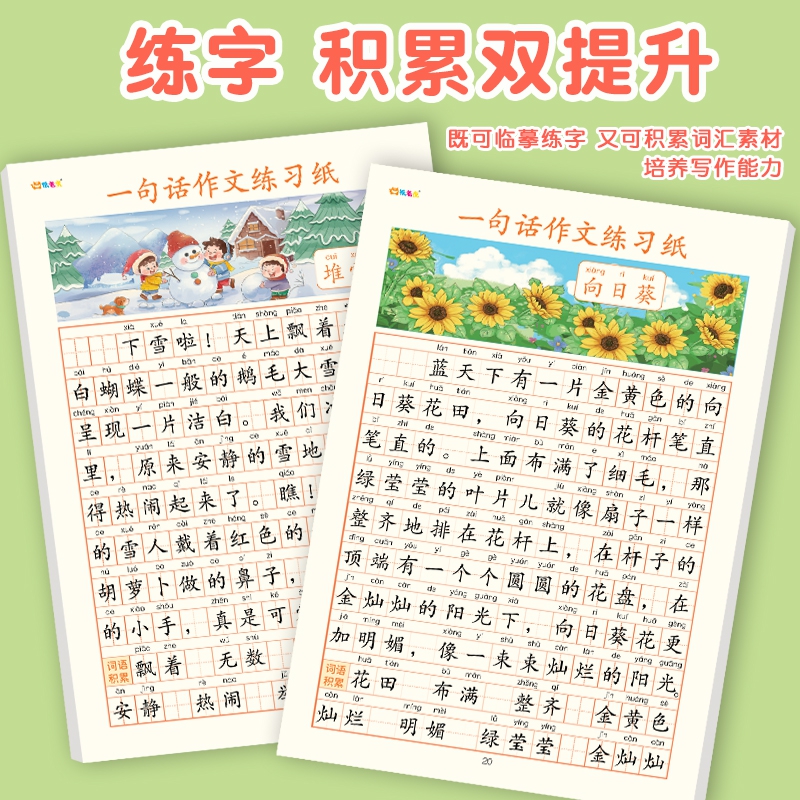 一句话扩写作文描红练字帖一二三年级语文1句话日记起步入门看图写话字帖小学生写作思维训练大全临摹练习帖