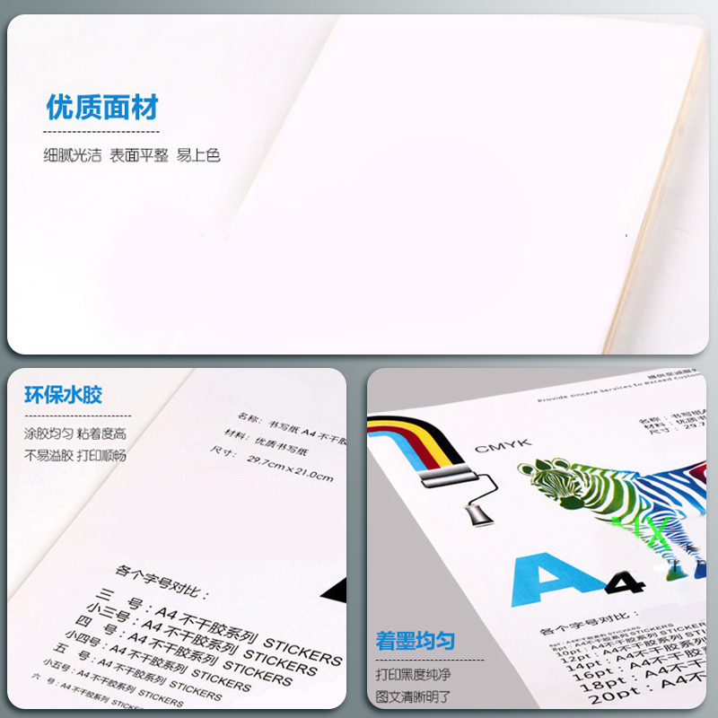 a4不干胶标签打印贴纸 空白哑光A4内分切割不干胶纸背胶纸手写高粘哑面箱贴喷墨激光复印打印纸不溢胶不卡纸