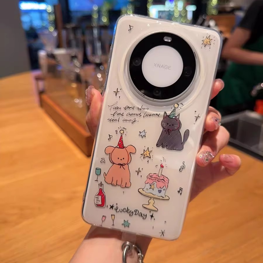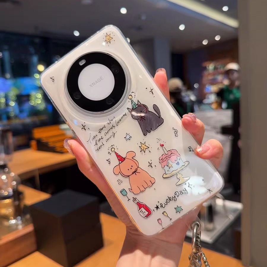 卡通蛋糕小狗猫咪适用华为mate70pro+手机壳链条Pura70pro动物插画双层新款防摔Pura80pro可爱保护套英文小众