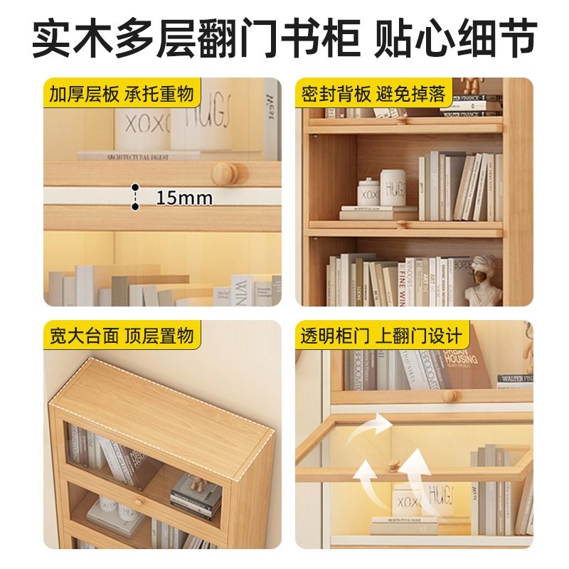 松木实木书架一体靠墙落地置物架儿童书柜学生家用储物柜收纳柜子