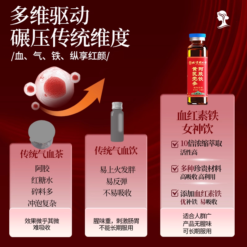 同仁堂黄芪阿胶补气血口服液党参补铁女人贫血调理气血不足盒补血