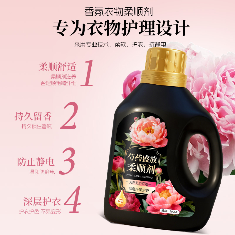 芍药盛放柔顺剂衣物防静电香软柔顺衣物蓬松高端衣物洗衣液去毛躁
