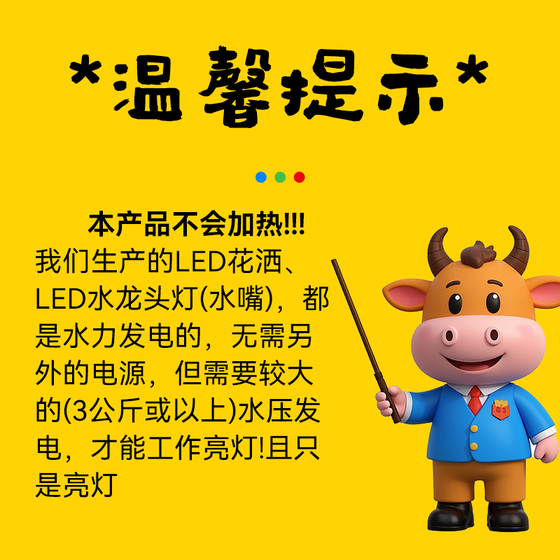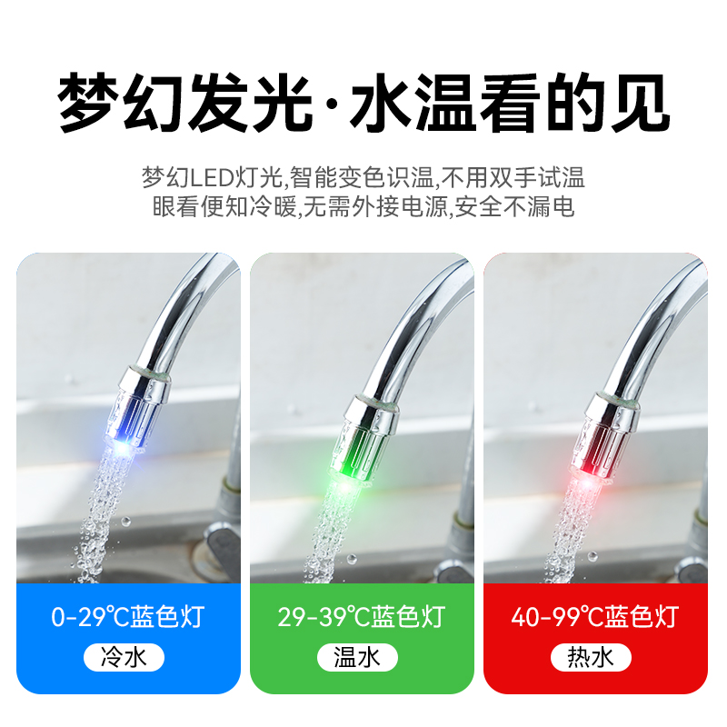 感应接头水力发电水龙头变色不加热led冷热水二合一灯螺纹胶垫