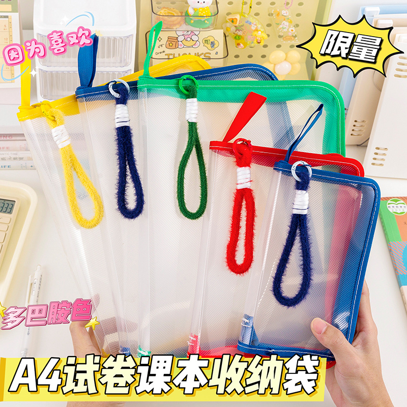 a4拉链袋文件袋学科袋办公学科分类收纳透明学生用加厚防水档案中小学生科目试卷收纳装作业文具网格补习袋