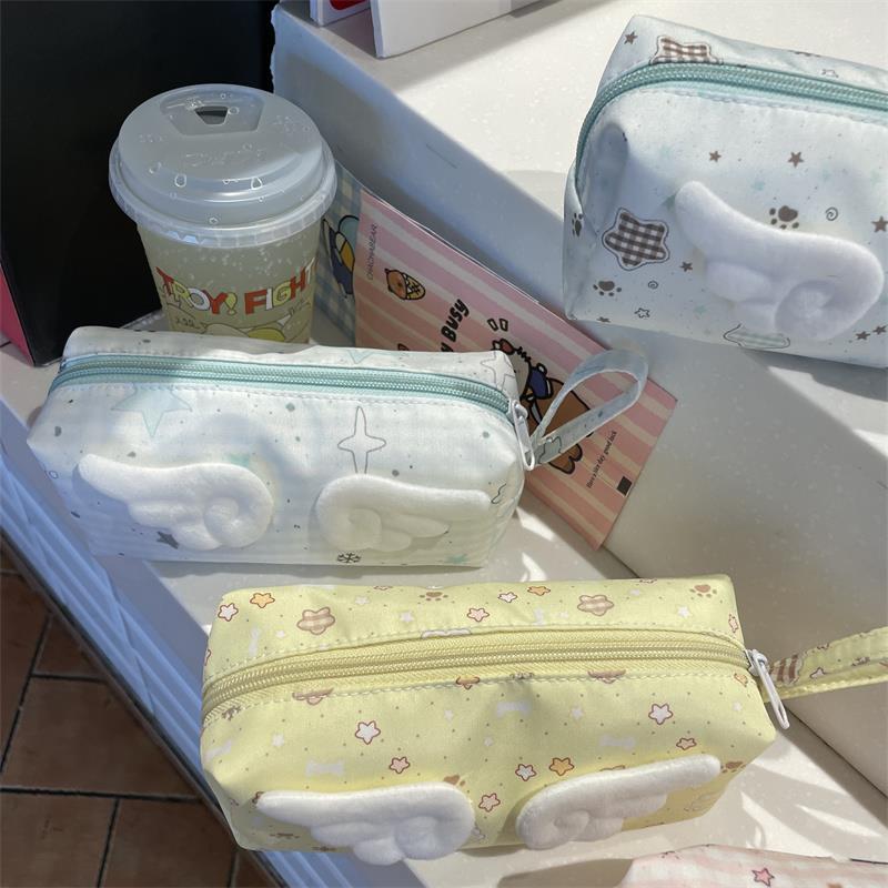 2025新款开学季ins风笔袋高颜值大容量翅膀少女心收纳笔袋小清新薄荷绿文具盒星星初1高中生小学生学习用