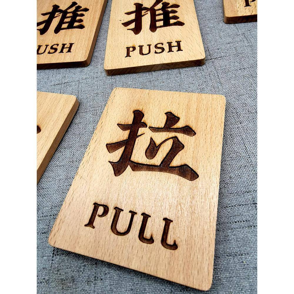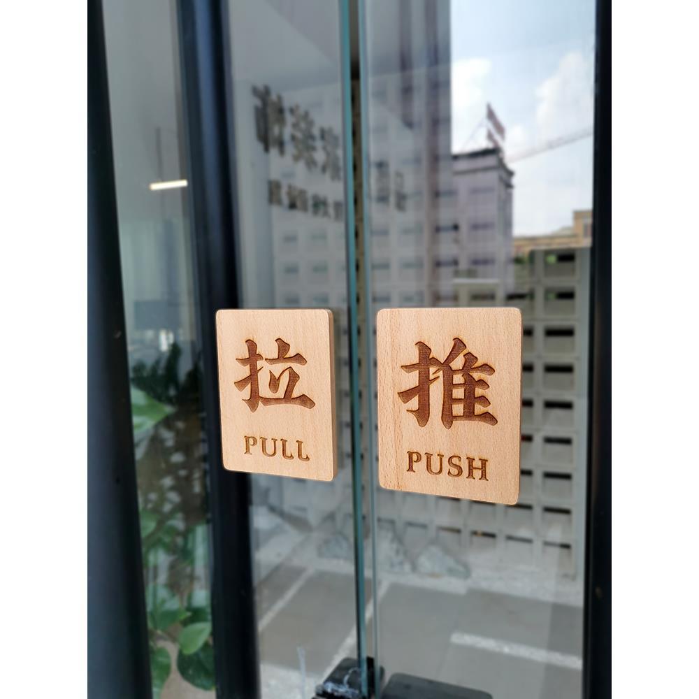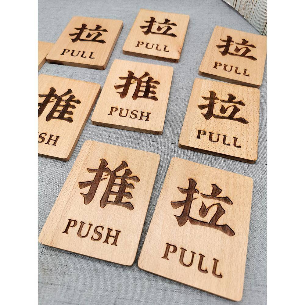 推拉门贴木质玻璃门提示牌左右移门牌创意高档实木推拉标识牌