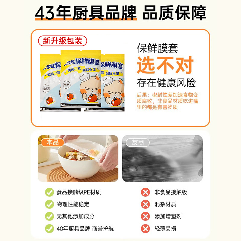 佳帮手一次性保鲜膜套罩食品级家用保鲜袋厨房专用带松紧剩菜碗套