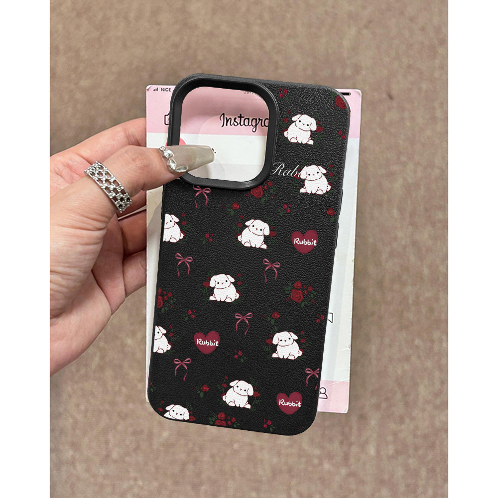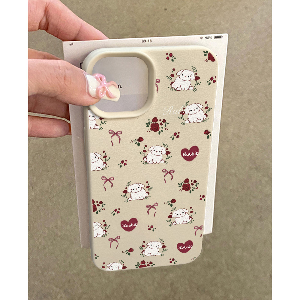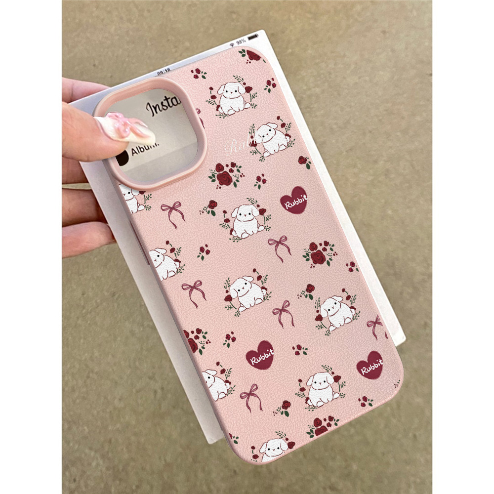 可爱玫瑰兔子适用于小米13/14手机壳红米note12/11Tpro+新款时尚k70pro防摔k60k50k40皮纹大孔note13软保护套