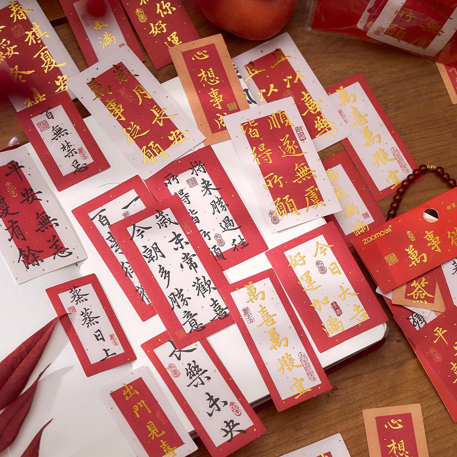 好运加满烫金书法文字贴纸包国风祝福手帐DIY拼贴装饰素材封口贴