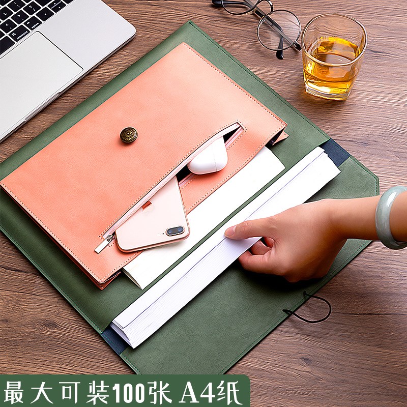 A4皮质文件袋文件包女款手提袋档案袋收纳册加厚防水商务公文袋办