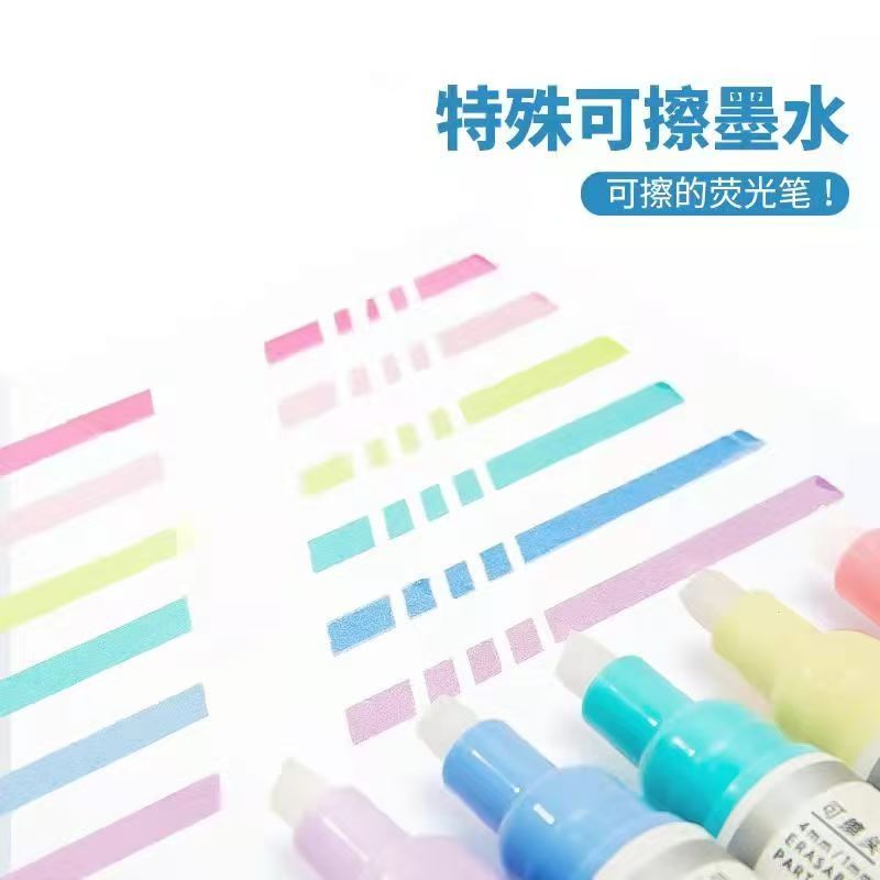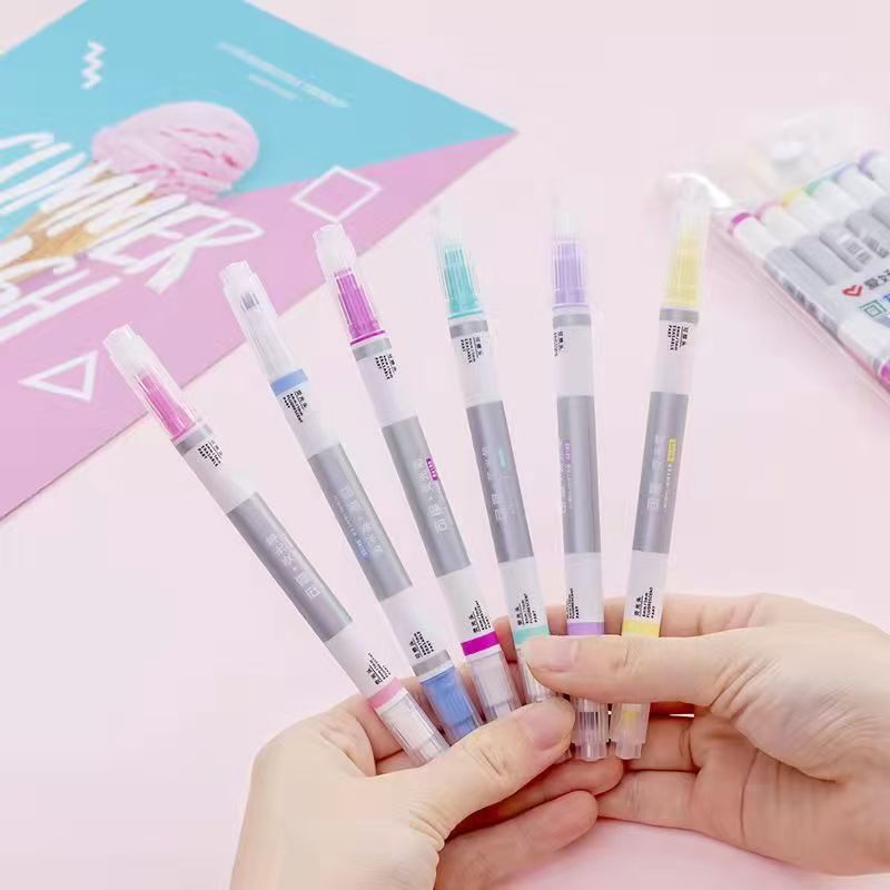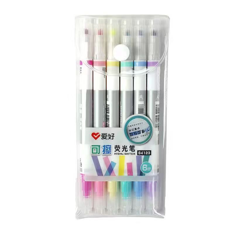 爱好可擦荧光笔学生用彩色双头标记划重点记号笔糖果色6色手账笔