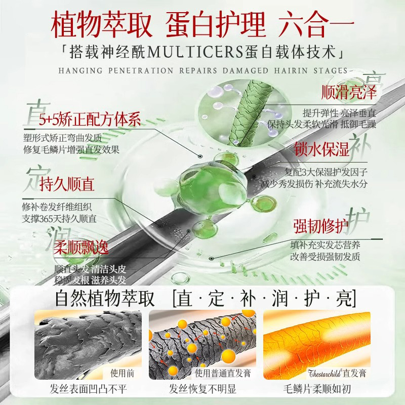 蛋白矫正直发膏免拉永久定型家用头发直顺软化剂一梳直官方旗舰店