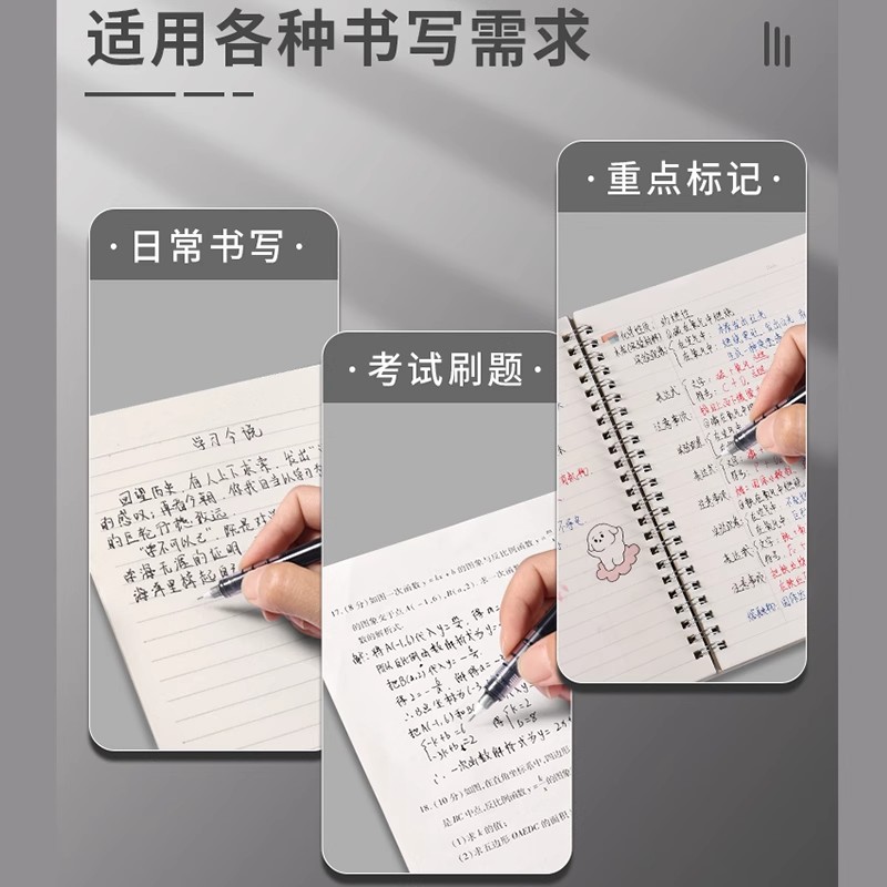 ST刷题笔高颜值按动中性笔圆珠笔黑色水笔小学生专用考试0.5速干碳素笔水性黑笔按压式做笔记签字笔非按斤卖