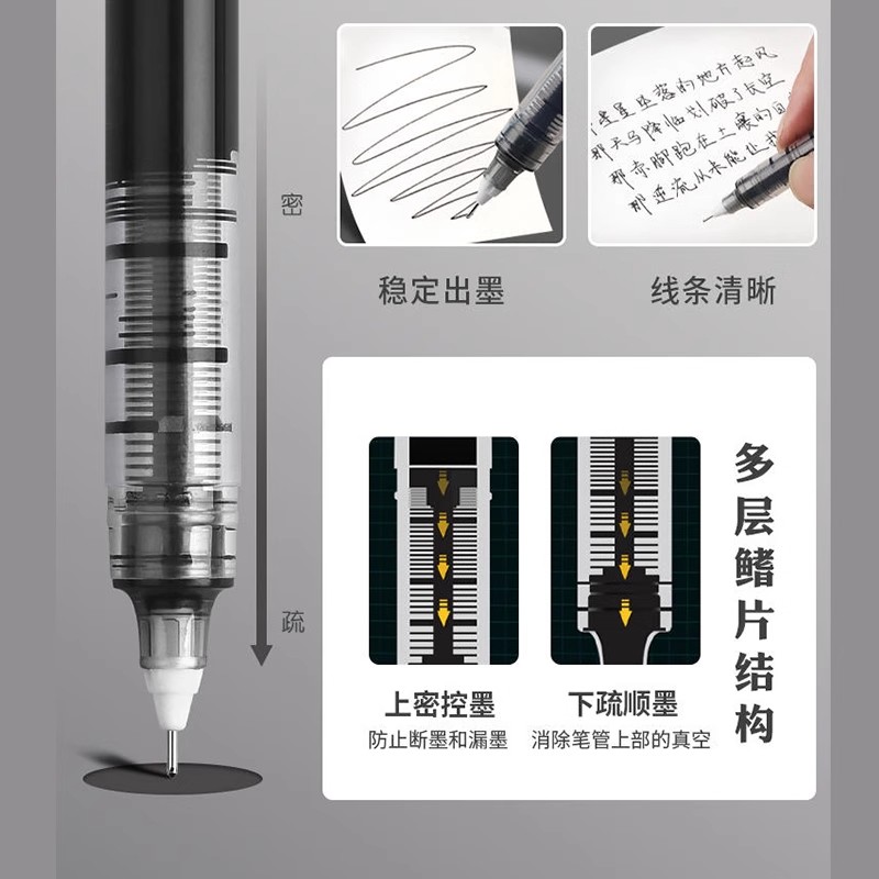 得力直液式走珠笔速干大容量直液笔0.5黑色中性笔学生用速干刷题笔水性笔直液笔圆珠笔商务办公简约风笔杆
