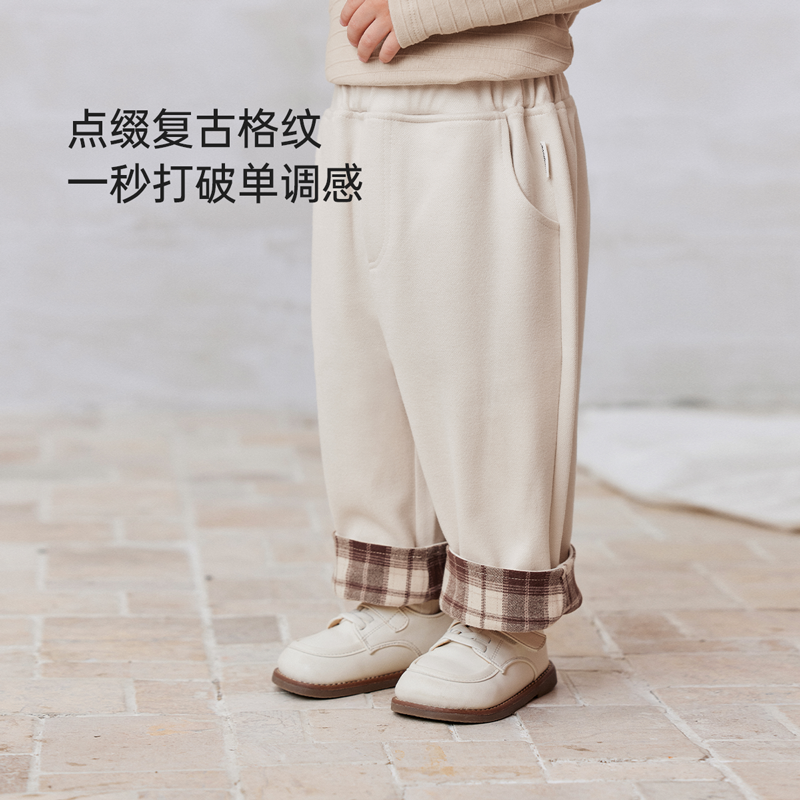 babylove婴幼儿裤子秋冬外出百搭休闲裤男女宝宝纯色卷边宽松长裤