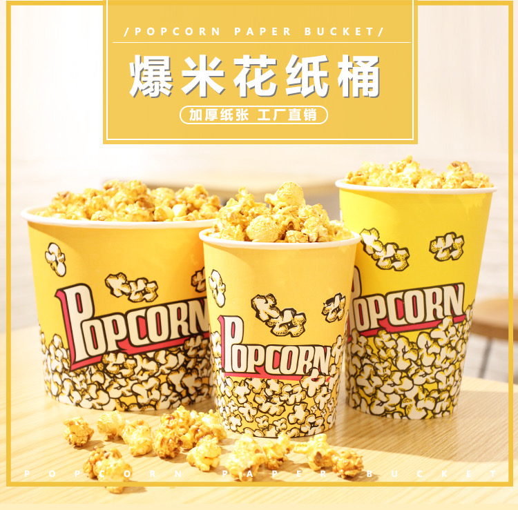 爆米花桶一次性爆米花纸桶包装桶打包带卡通电影院纸杯串串桶批发