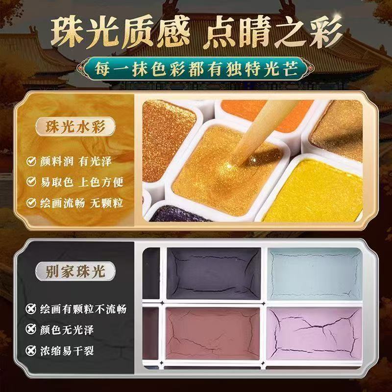 珠光水彩固体颜料浓缩新敦煌色美甲美术生专用绘画唐卡中国画彩绘