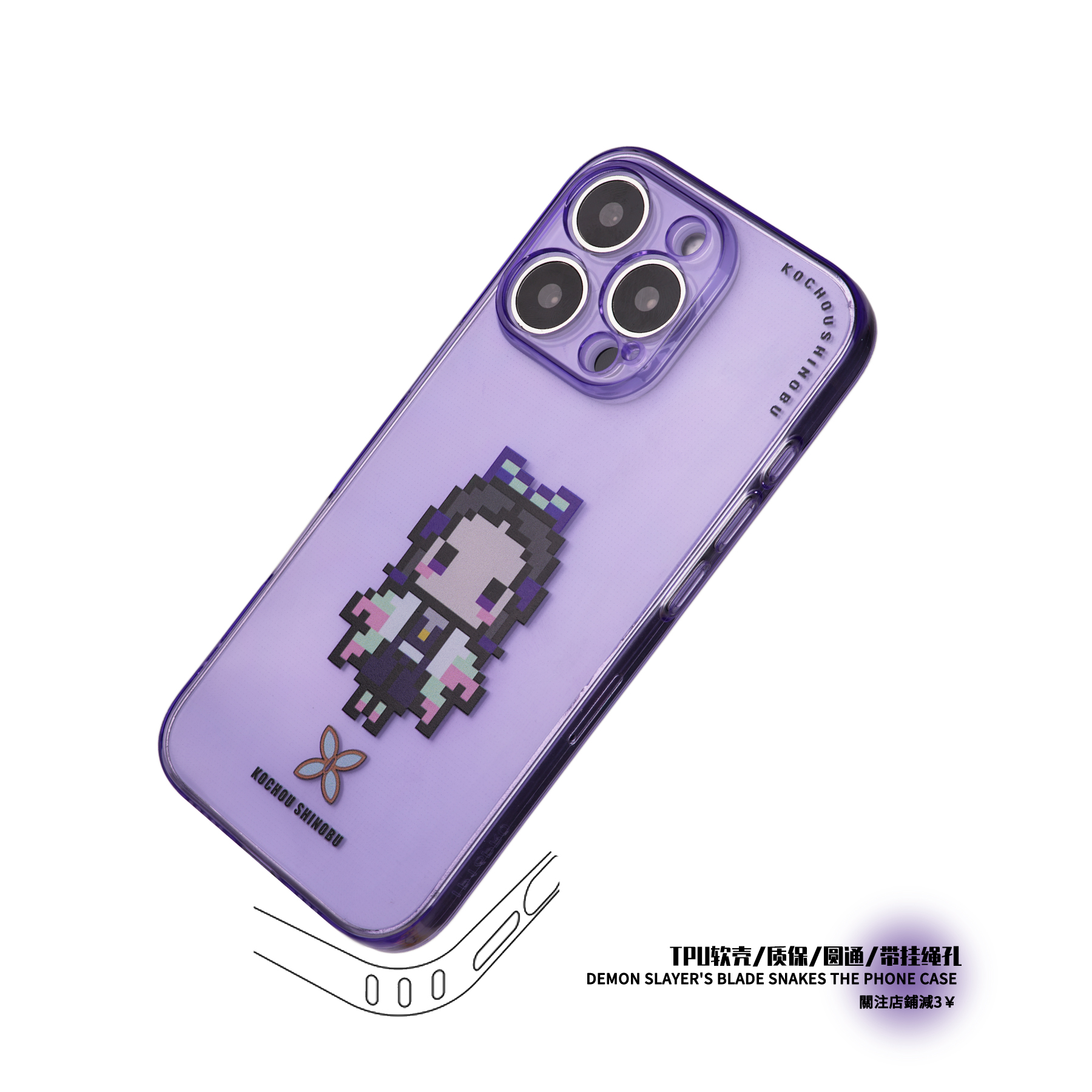 鬼灭之刃手机壳适用于苹果16Promax蝴蝶忍保护壳iPhone16Pro硅胶防摔紫色像素风14PRO/15PROMAX保护套