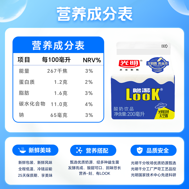 光明噜渴look低温酸奶经典原味益生菌生牛乳发酵200ml*10盒饮品