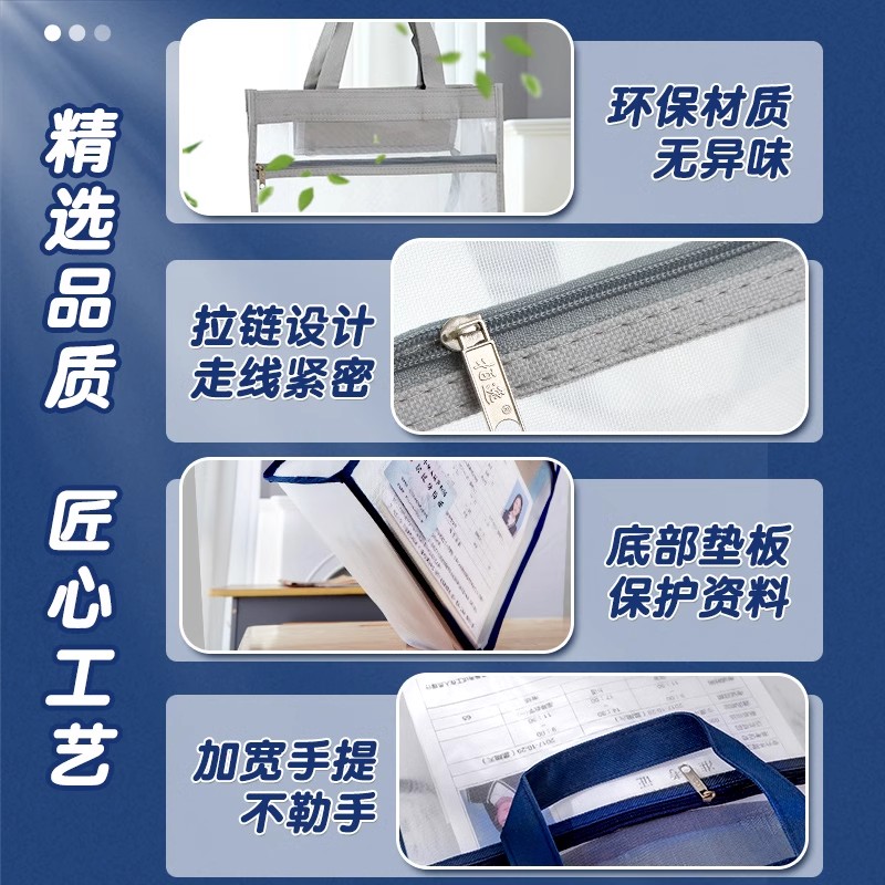 a4拉链袋文件袋学科袋办公学科分类收纳透明学生用加厚防水档案中小学生科目试卷收纳装作业文具网格补习袋