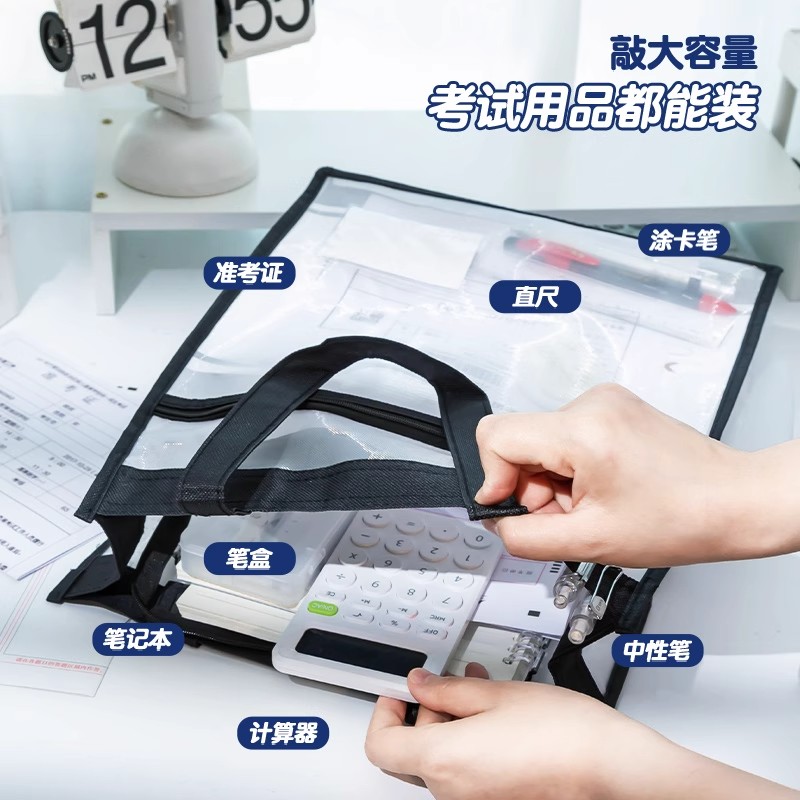 能带进考场~中考高考考试专用袋子手提透明大容量网纱文具收纳袋