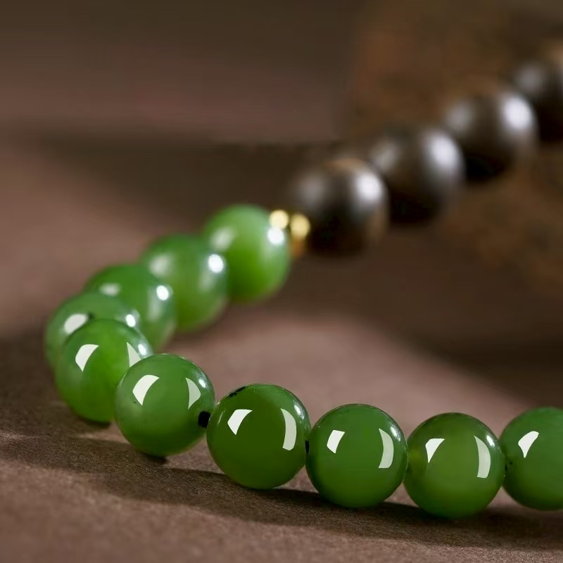 新款天然越南芽庄沉香手串女款正品碧玉手链菠菜绿双半山半水