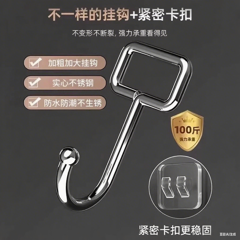 强力挂钩透明无痕挂钩强力承重粘胶贴门后挂钩免打孔吸盘厨房粘钩