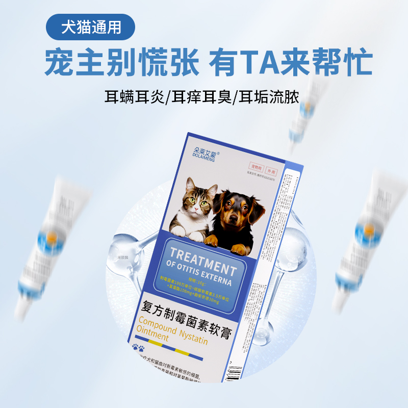 复方制霉菌素软膏猫咪狗狗宠宠物耳螨专用药猫用马拉色菌外耳药