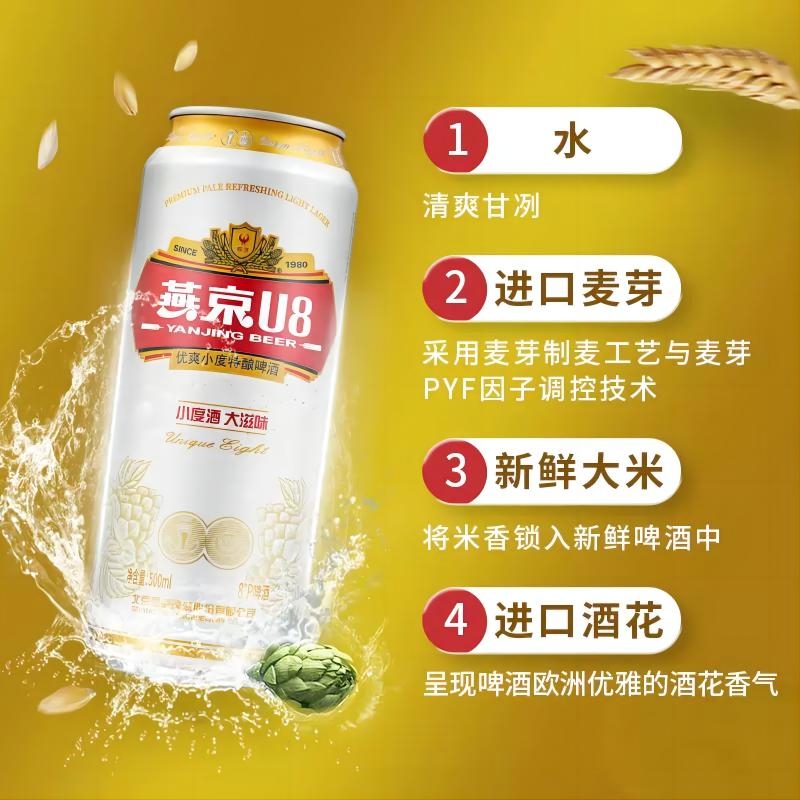 燕京U8啤酒8度P听500ml罐装整箱特价鲜日期现货速发燕京啤酒清爽