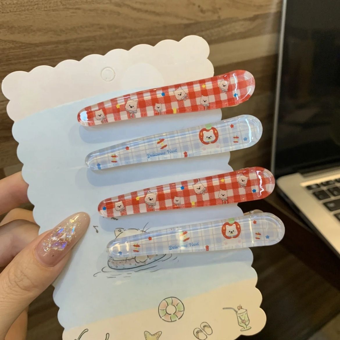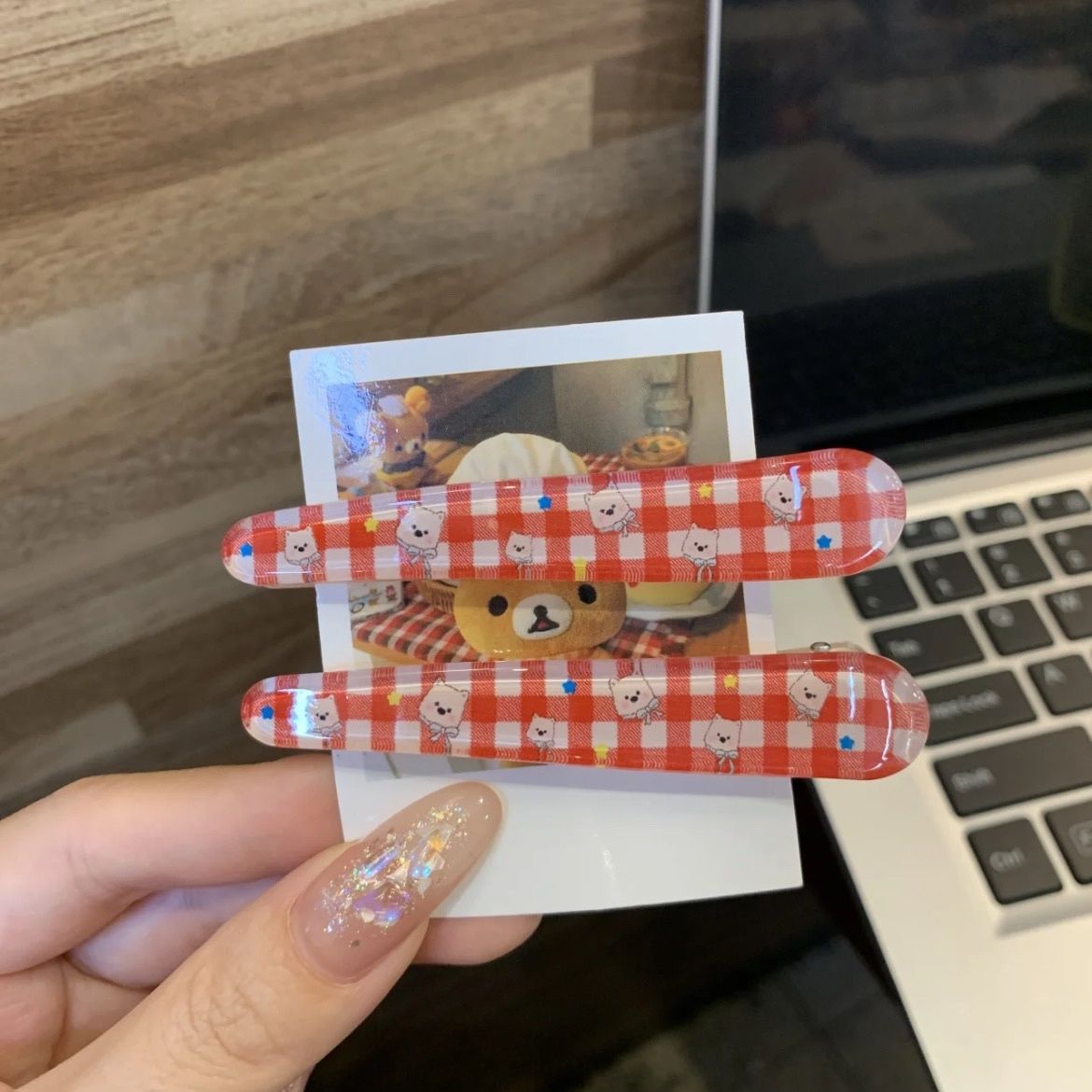 格纹少女果冻小狗鸭嘴夹卡通可爱透明侧边鸭嘴夹网红ins风发卡