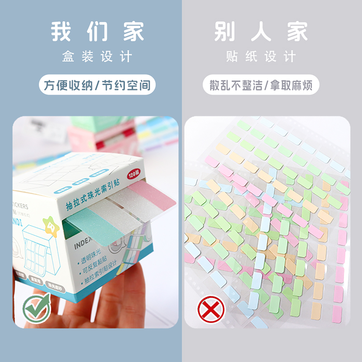 抽拉索引贴便利贴标签贴纸莫兰迪便签纸手账ins风荧光贴学生用小条高颜值粘性强纸质可书写书签标记号分类贴