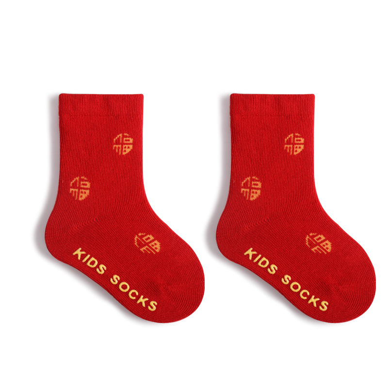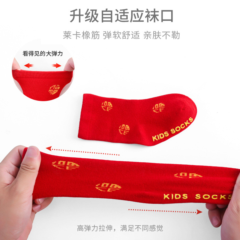 婴儿红色袜子6-12月1一2岁百天男女宝宝秋冬福字袜新年棉袜春秋季