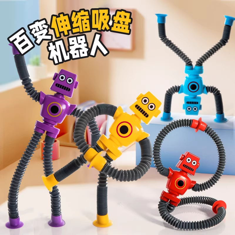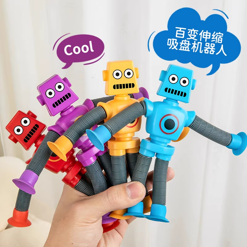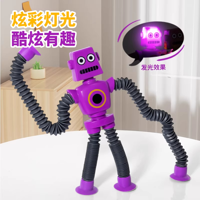 网红爆款发光百变伸缩管吸盘机器人拉伸创意解压宝宝益智儿童玩具