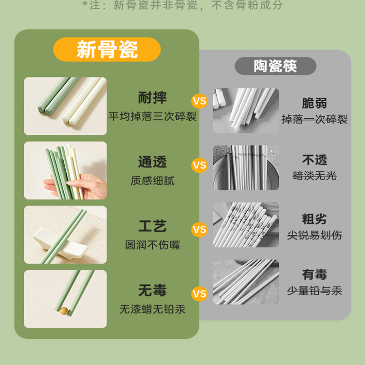 炊大皇陶瓷筷子家用高档套装高颜值餐具耐高温赫本风防霉分食瓷筷