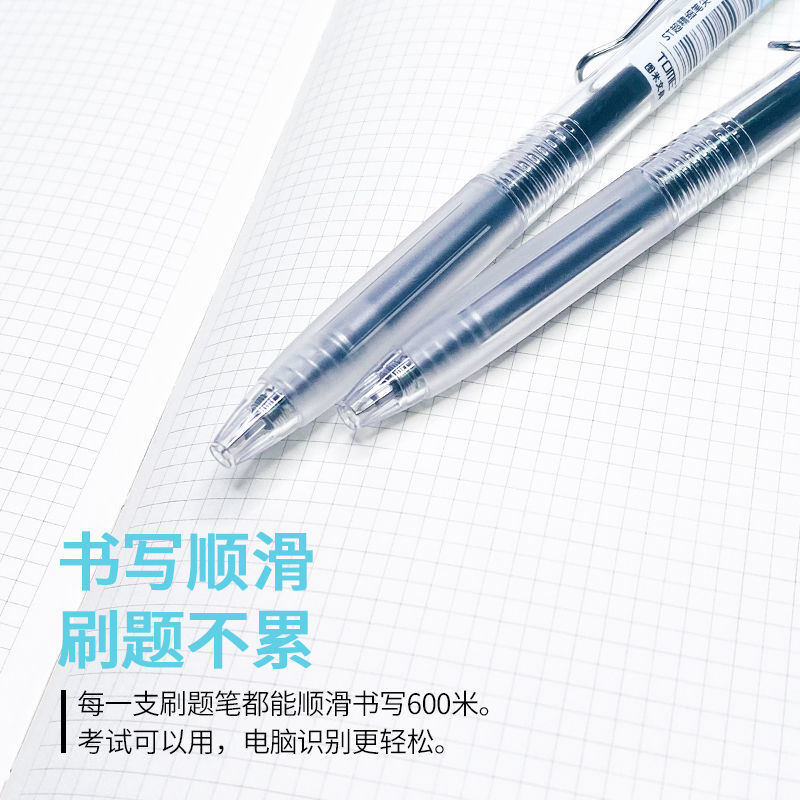 ST刷题笔高颜值按动中性笔圆珠笔黑色水笔小学生专用考试0.5速干碳素笔水性黑笔按压式做笔记签字笔非按斤卖