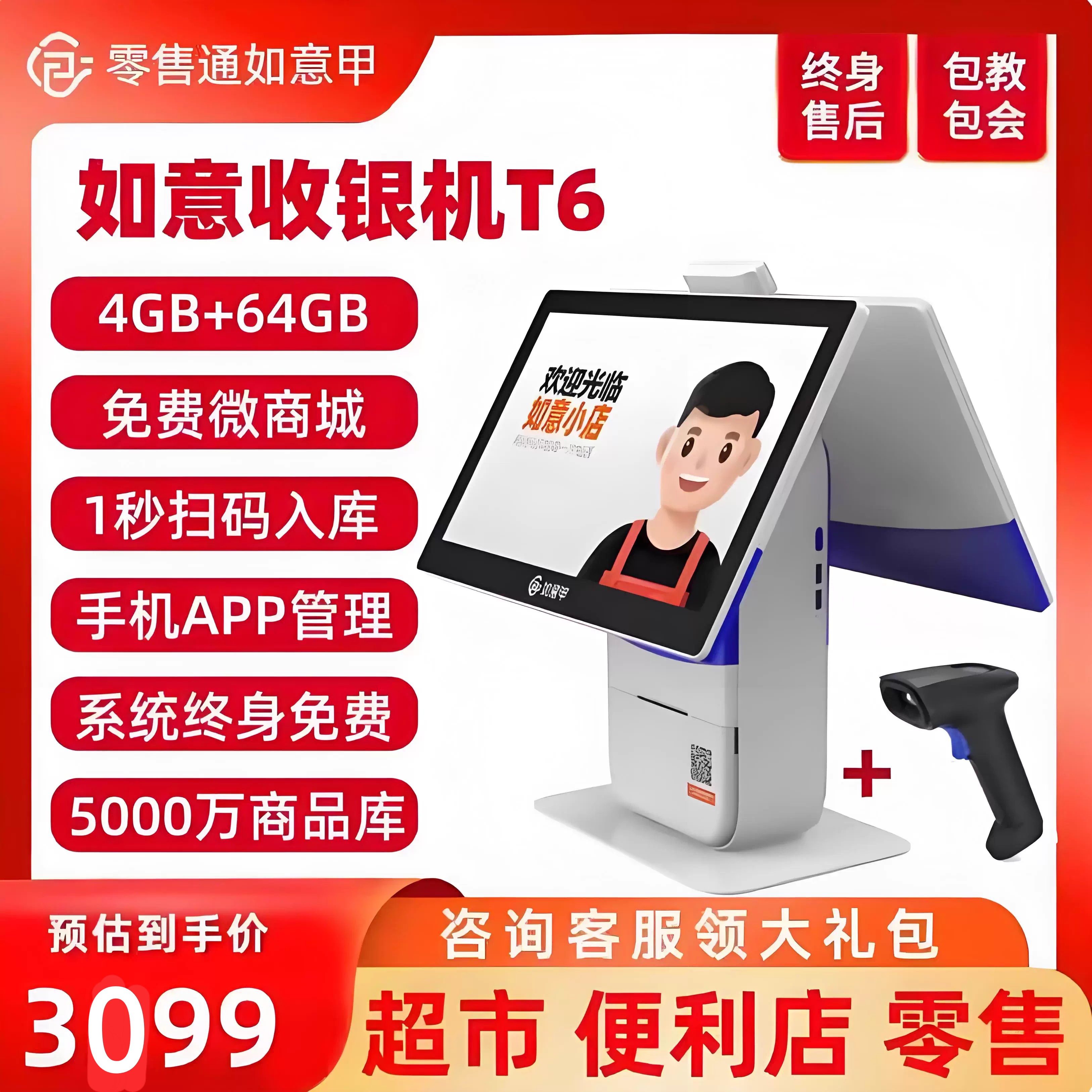阿里零售通如意甲收银机双屏触摸刷脸Ai识别系统终身免费以旧换新
