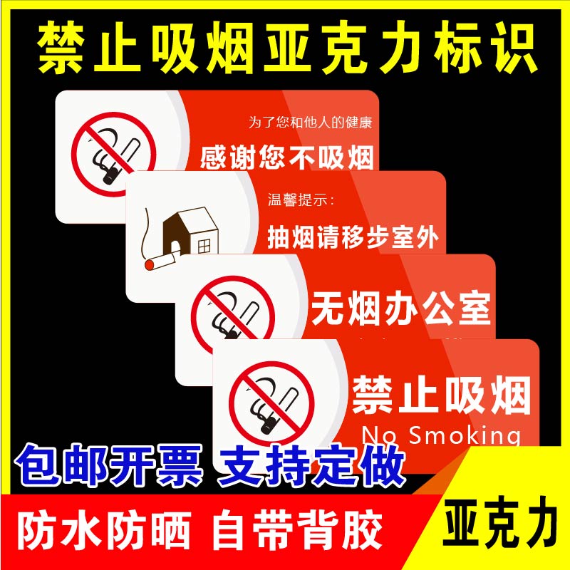 禁止吸烟亚克力标识牌温馨提示牌办公室门牌标志墙贴禁烟请勿吸烟抽烟请移步室外不吸烟无烟区吸烟区标识定制
