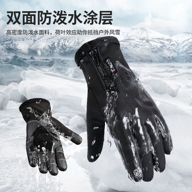 冬季滑雪手套触屏摩托车加绒保暖加厚骑行防水防风寒防滑户外防雨