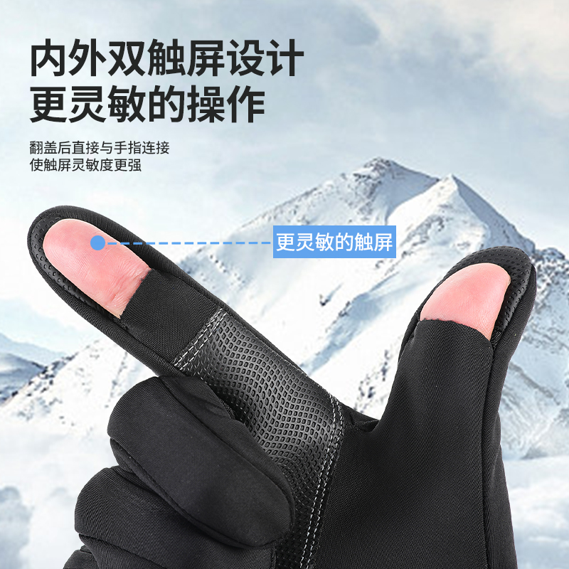 手套男冬季露二指可触屏户外骑行手套女士外卖骑手专属防寒手套暖