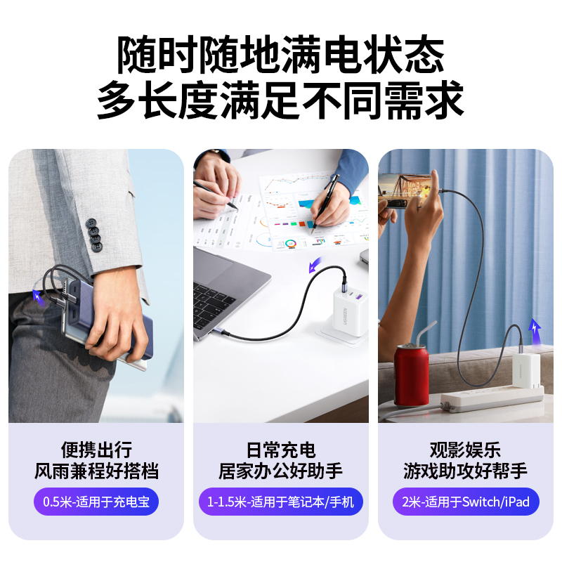 绿联US261 type-c公对公数据线双头60W快充充电器适用于电脑