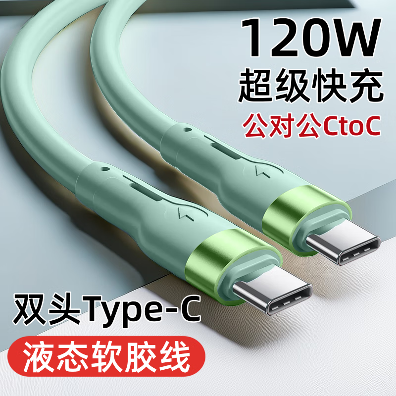 艾胜者 双头Type-C快充数据线120W加粗tpyec适用华为荣耀OPPO一加魅族vivo手机iPadAir公对公macbook充电线器